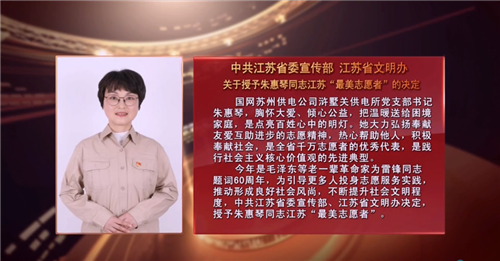 授予朱惠琴江苏“最美人物”荣誉称号!