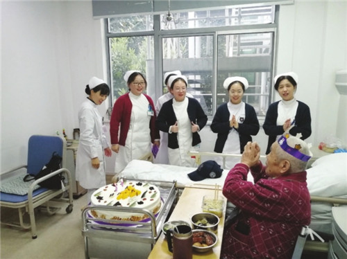 “祝你生日快乐……”12月2日上午,留园社区卫生服务中心的康复病房里传来热闹的生日歌。活动现场,医务人员将生日蛋糕送到94岁的洪阿爹床边。尽管口齿已经不太清晰,但是老人还是不断地举手作揖,以示感谢。