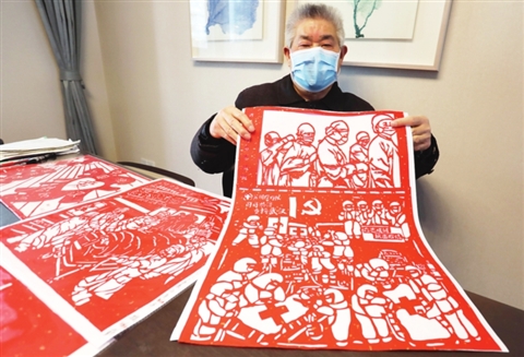 近日,苏州工业园区湖东社区星公元小区居民魏为勤创作了一组主题剪纸作品《白衣战士》,讴歌了奋战在战“疫”一线的医务人员。□记者 杭兴微 摄