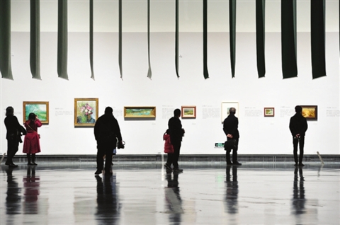 “苏州美术画赛会100周年特展”吸引众多参观者。□记者 张健 摄
