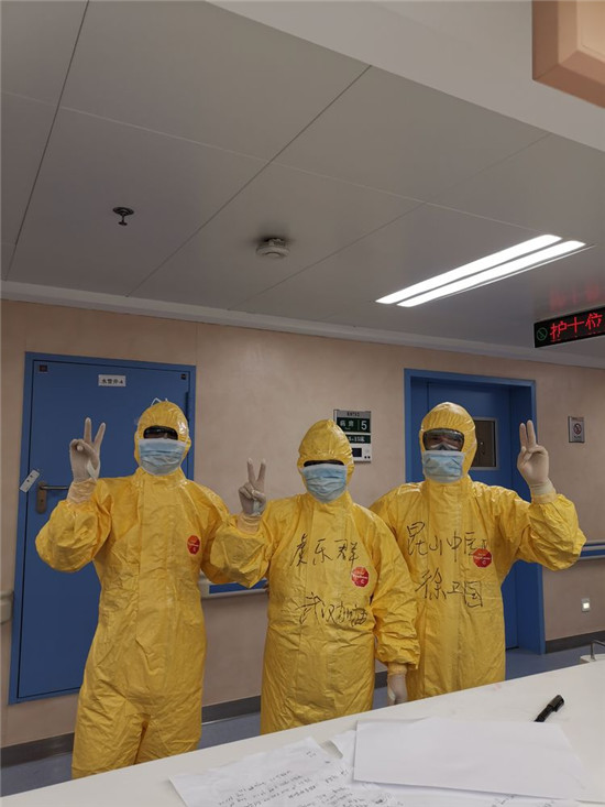 2月9日,虞乐群率领38名昆山第二批驰援湖北医疗队医护人员加入了第五批江苏援湖北医疗队,奔赴武汉一线参战。此次出征武汉,是虞乐群队长第三次向院部主动请缨才获准。她说:“疫情牵动着全国人民的心,紧要关头,作为有30年的呼吸专业的‘老兵’,我当仁不让!我会带领昆山医疗队不辱使命!”